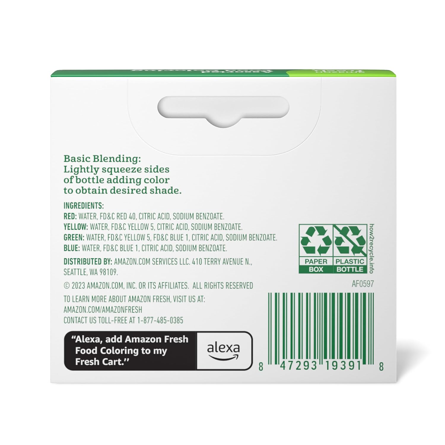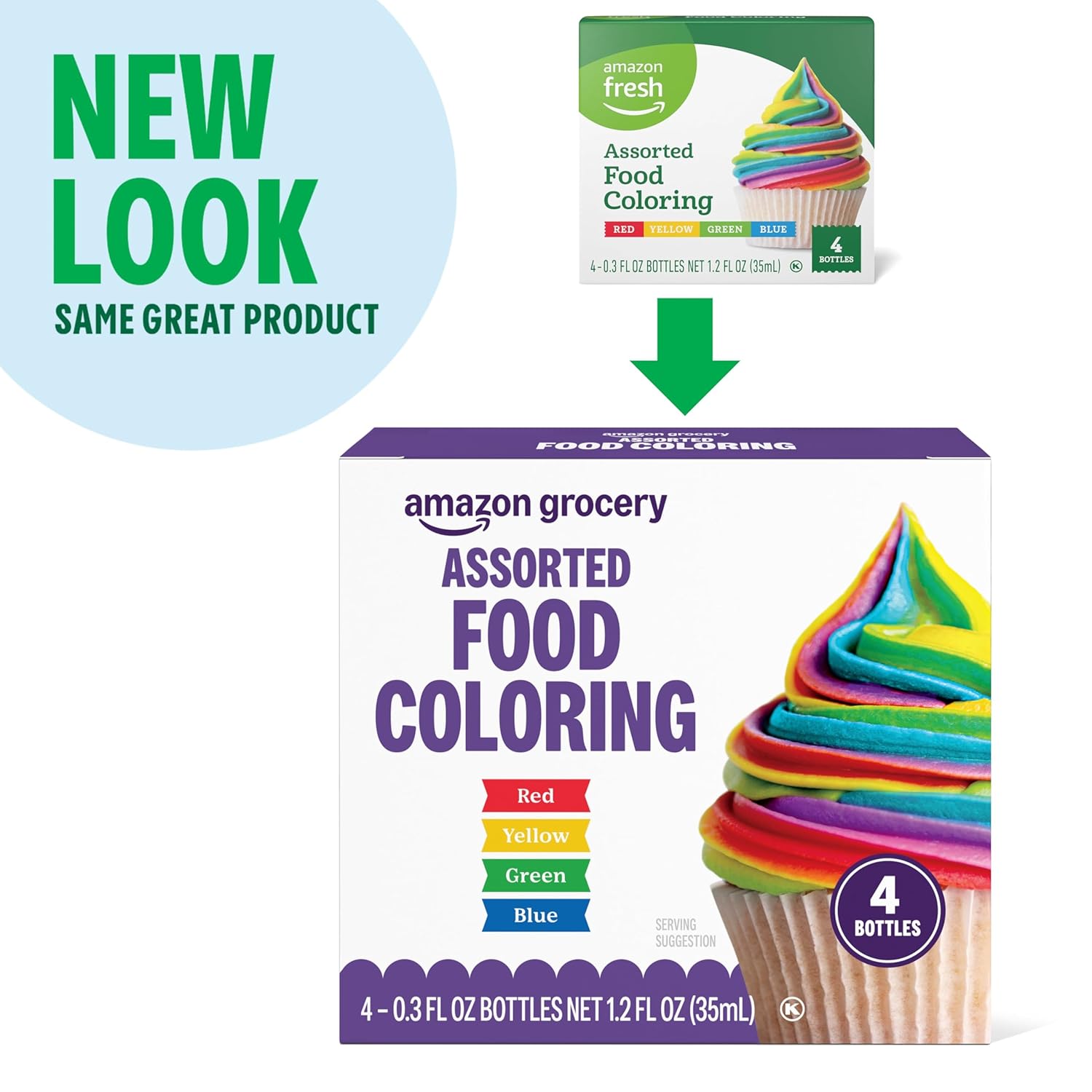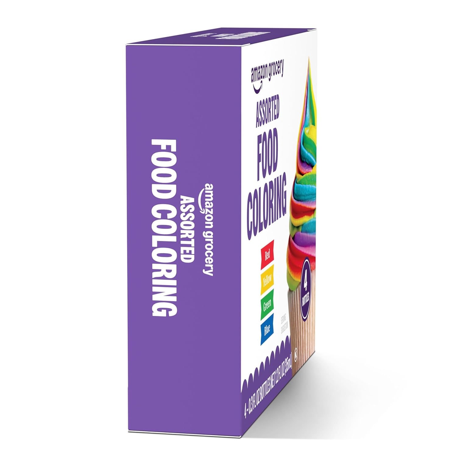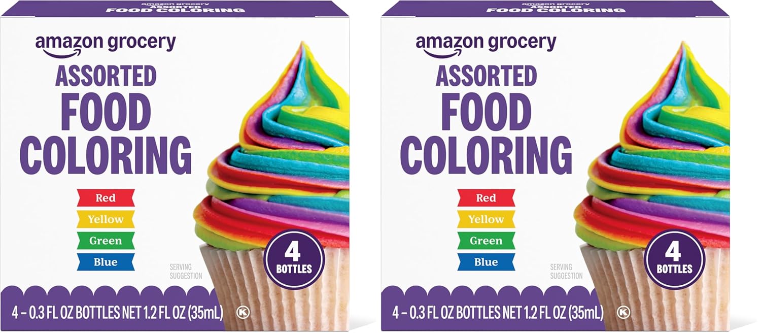 Amazon Grocery, Assorted Food Coloring, Contains Red, Blue, Green, Yellow Bottles, 1.2 Fl Oz (Previously Amazon Fresh, Packaging May Vary)