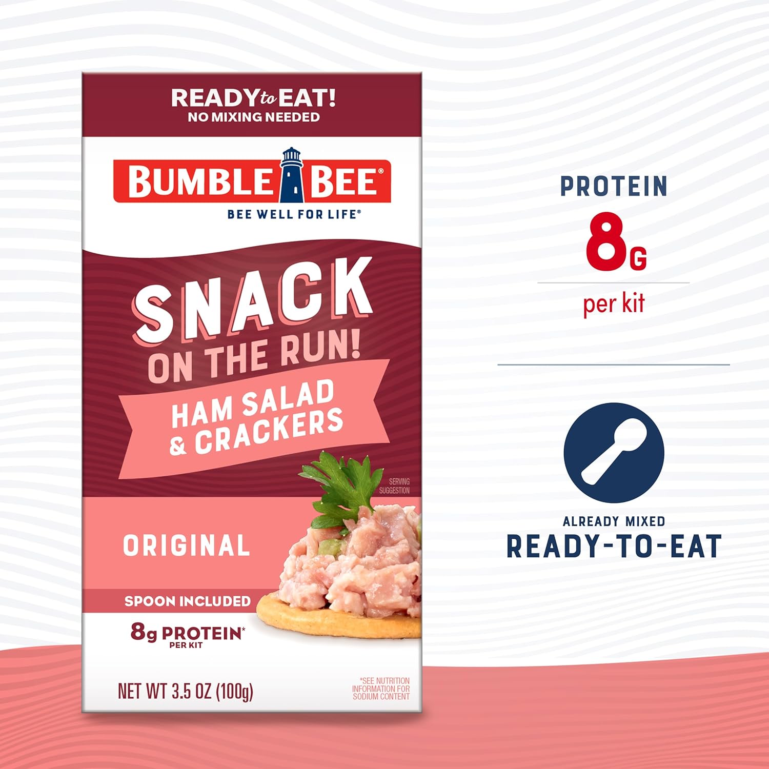 Bumble Bee Snack On The Run Ham Salad with Crackers Kit, 3.5 oz – Ready to Eat, Spoon Included – Shelf Stable & Convenient Protein Snack
