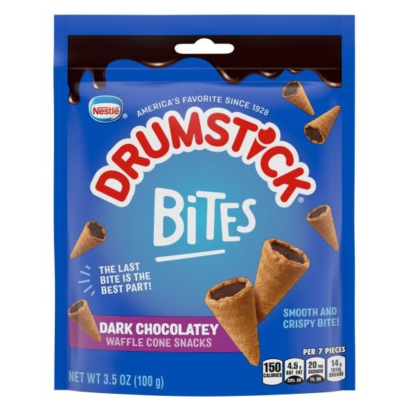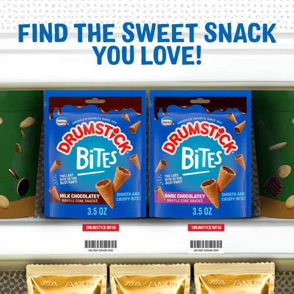 Drumstick Bites Dark Chocolatey Waffle Cone Snacks, Chocolate Dessert, Pantry Snacks 3.5 oz