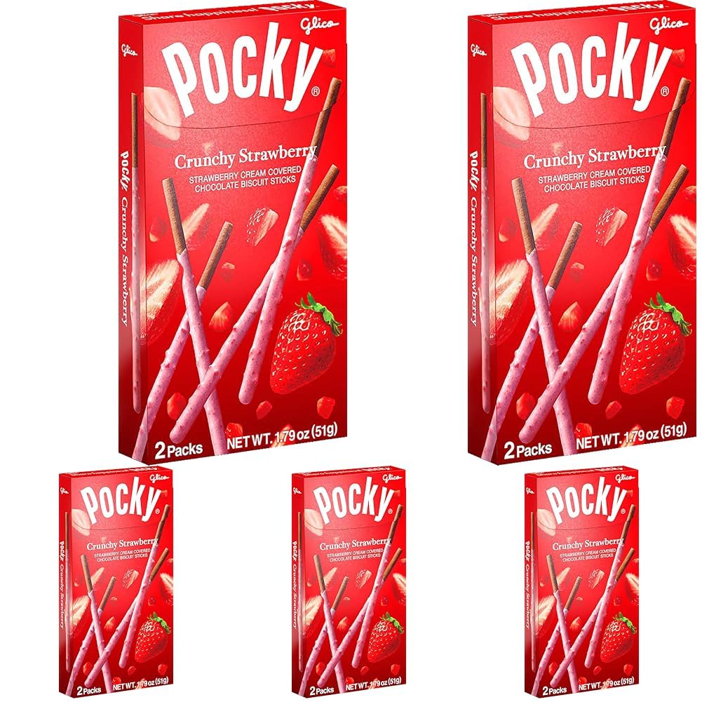 GLICO Pocky Crunchy Strawberry Covered Chocolate Biscuit Sticks 1.79 oz