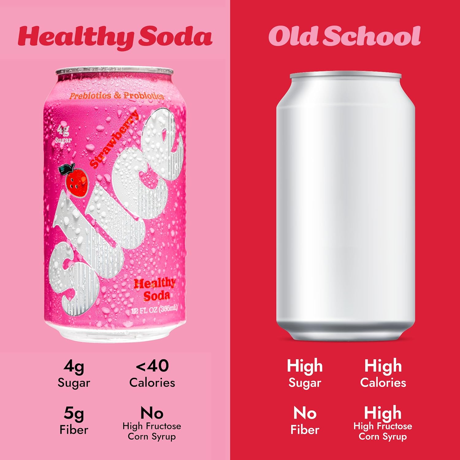 Slice Strawberry Healthy Soda, With Prebiotics and Probiotics, 12 fl oz Can
