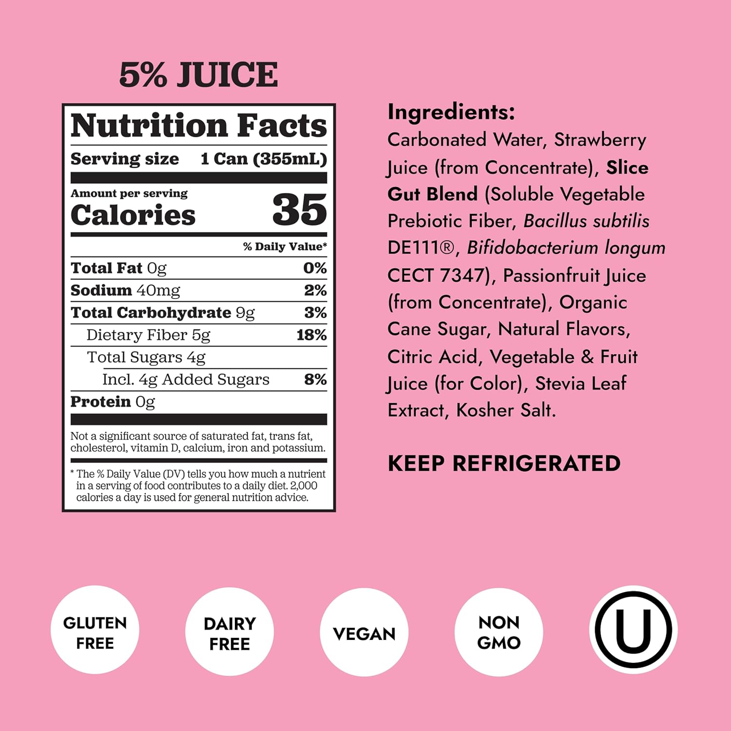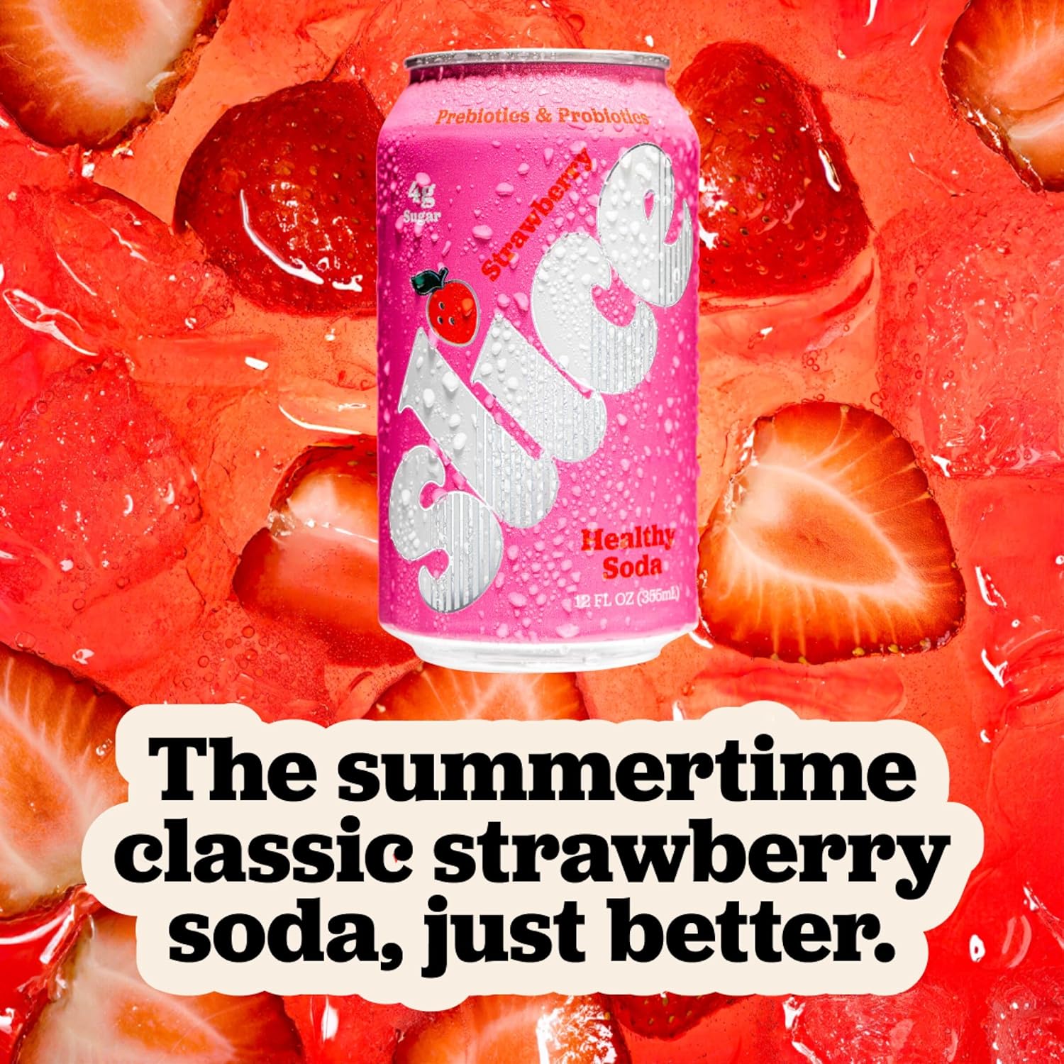 Slice Strawberry Healthy Soda, With Prebiotics and Probiotics, 12 fl oz Can