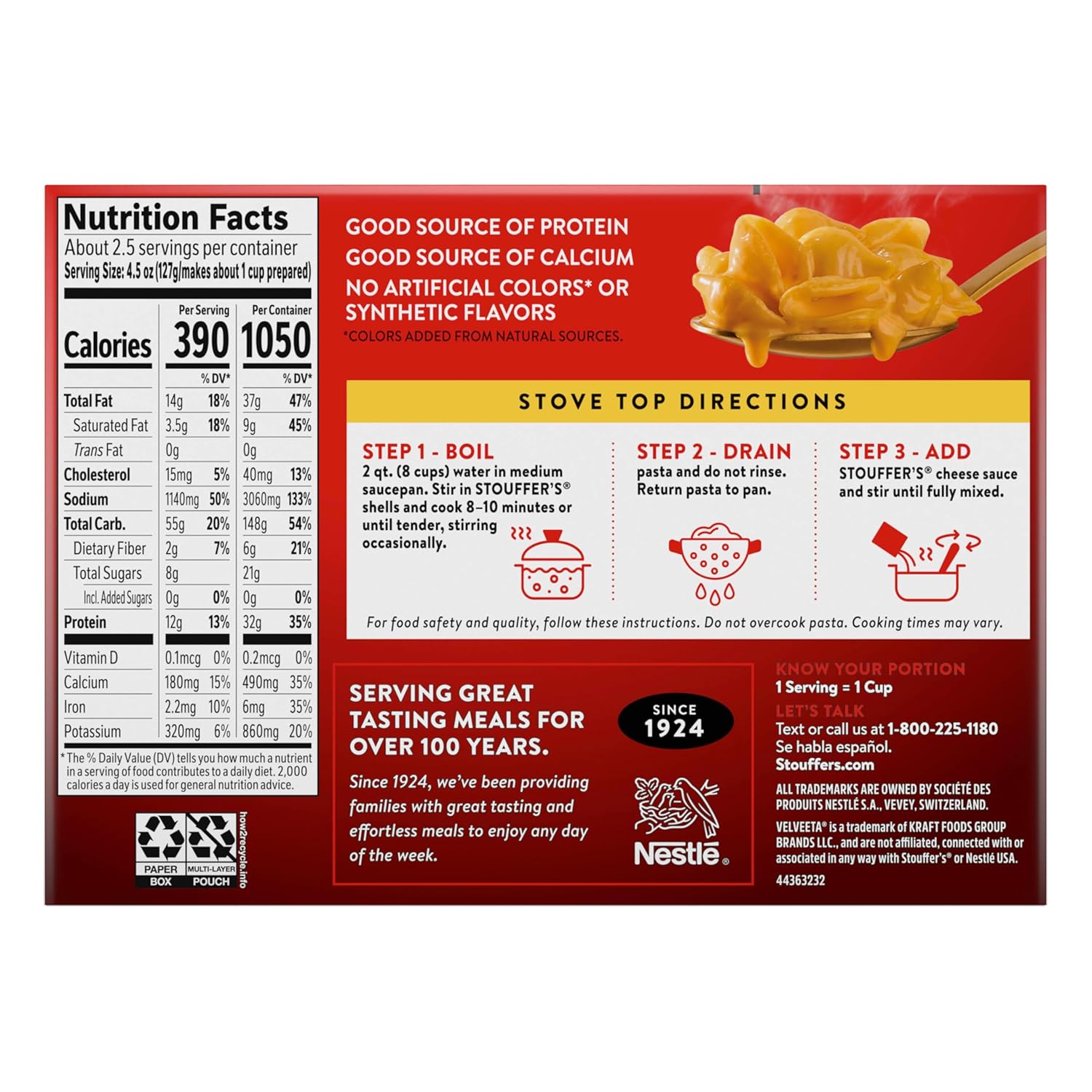 Stouffer’s Supreme Shells And Cheese, Cheddar Cheese, Boxed Mac & Cheese, Dinner Kit 12 oz