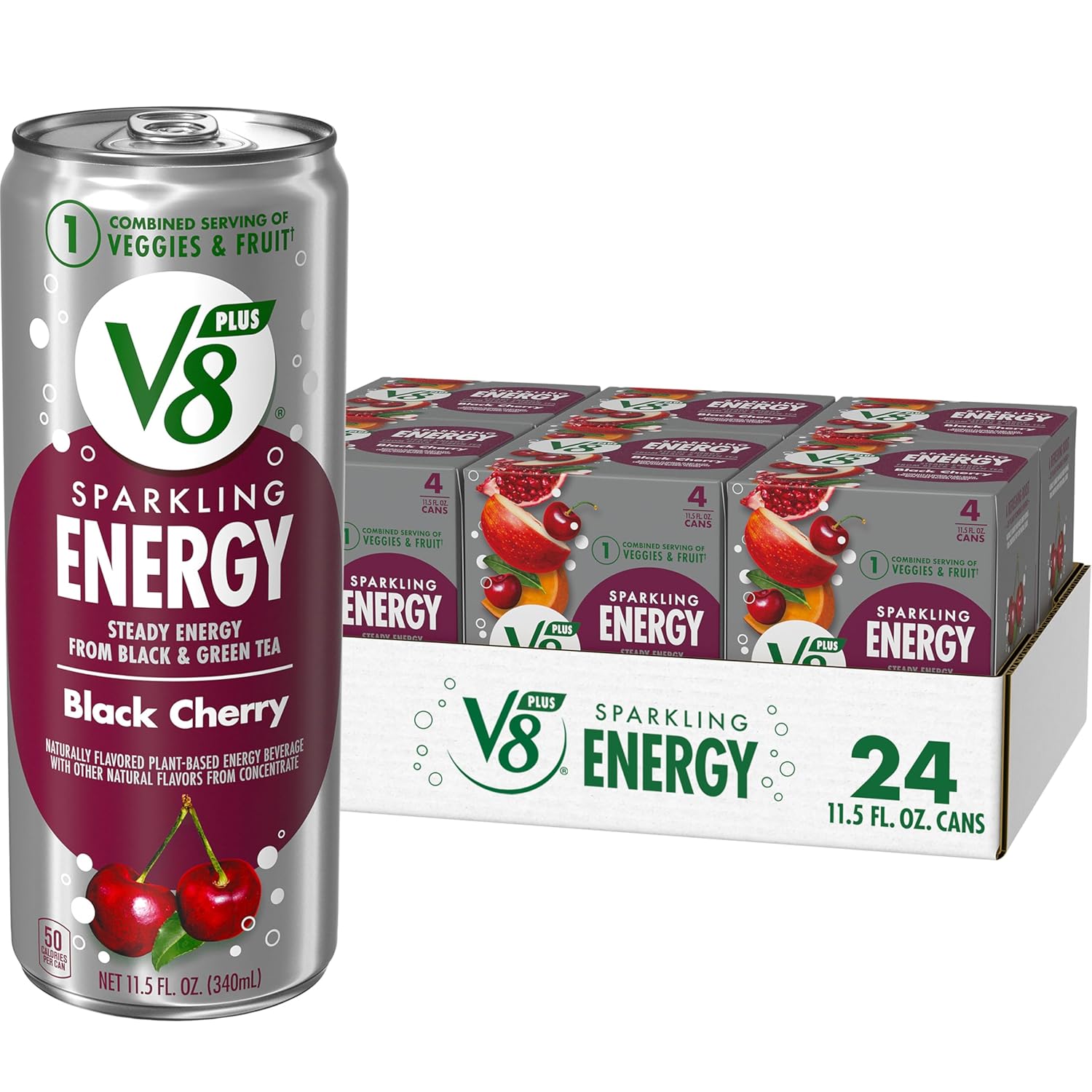 V8 +ENERGY Black Cherry Energy Drink, 11.5 fl oz Can (Pack of 4)